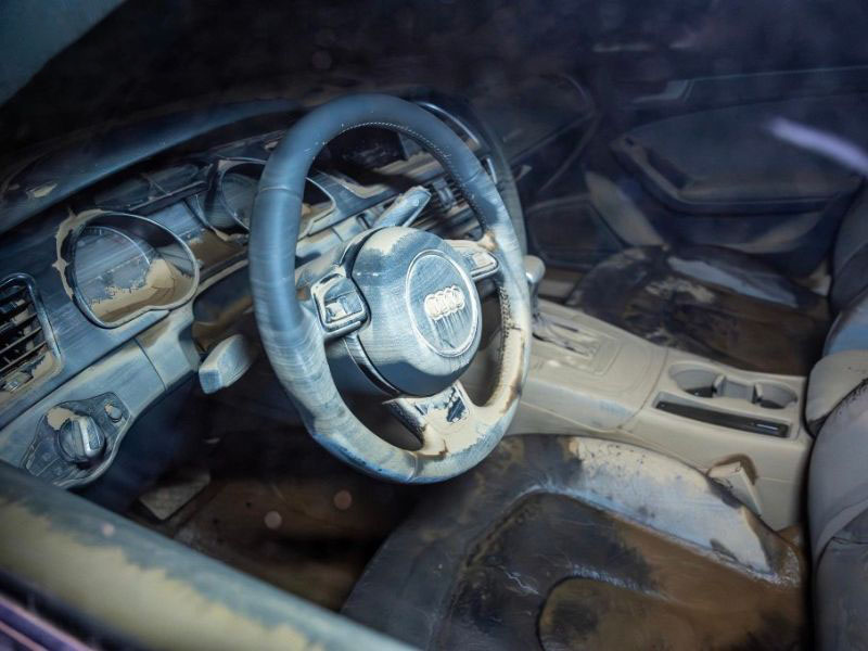 Khi nước ngập đến vô-lăng, hệ thống điều khiển điện tử, ECU, cảm biến, dàn lạnh, hộp số đều bị tổn hại. Khoang nội thất bị thấm nước hoàn toàn, kim loại bắt đầu rỉ, bùn đất xâm nhập sâu vào hệ thống.